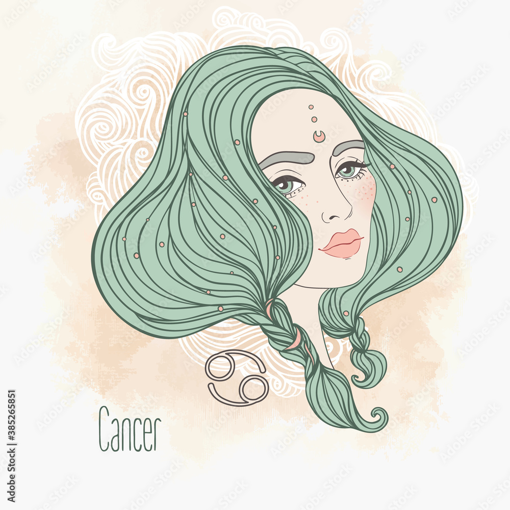 Fotografie Zodiac Illustration of cancer zodiac sign as a beautiful girl