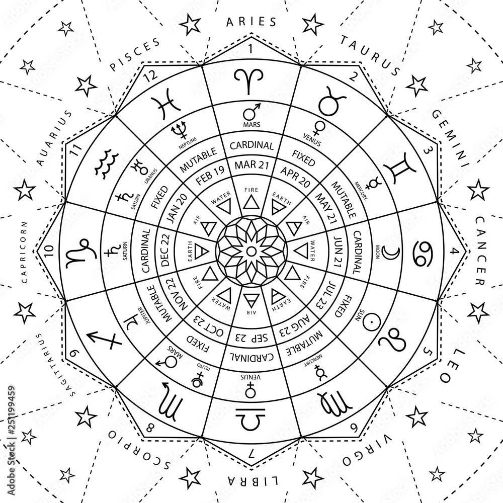 Fotografie Zodiacal circle for studing astrology vector illustration