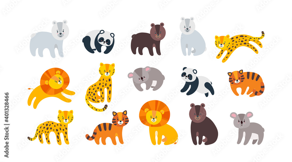 Fotografie Zoo animals set with lion, leopard, tiger and bears